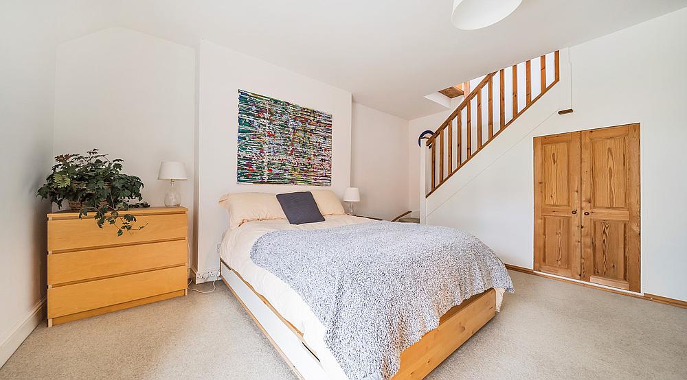 The Main Bedroom has an Ensuite which is fully tiled and has a large shower, wash hand basin and WC, and stairs leading up to the Second Floor which has Two Further Rooms with Storage Cupboards and skylight windows, suitable for use as Occasional Bedrooms.