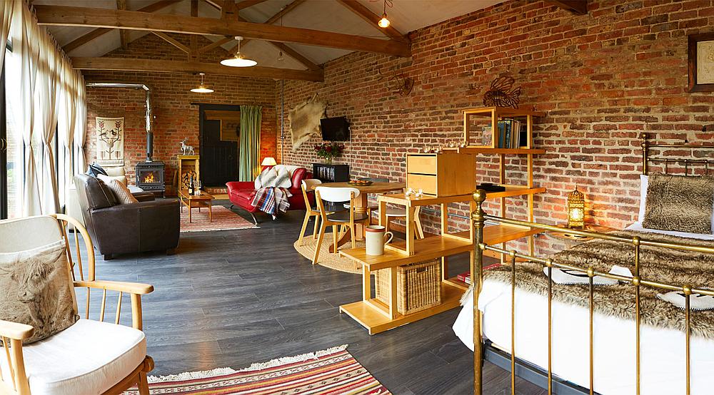 First floor loft style apartment sleeping two people converted from the original granary building with the grain hatch, beams and staircase still in situ. It has its own private entrance and is stylish, open-plan accommodation with Lounge / Dining / Kitchen with a separate, spacious bedroom with ensuite bathroom.