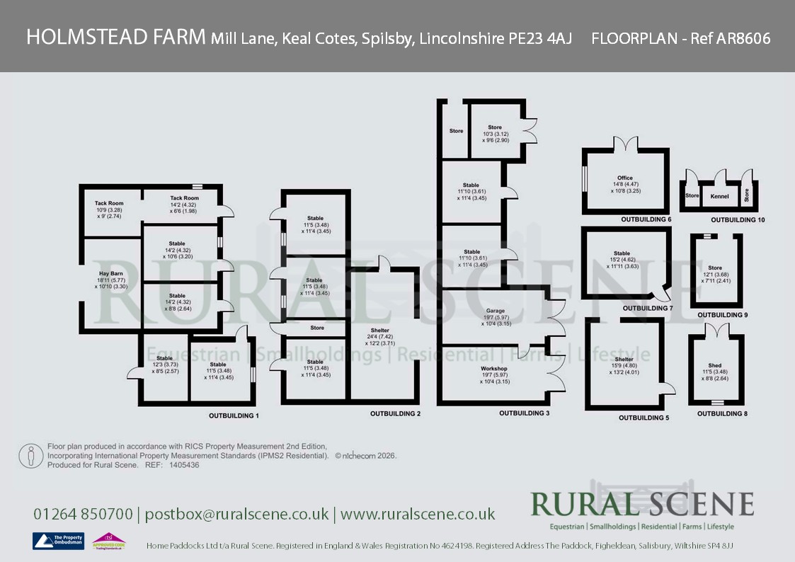 To the left-hand side of the yard there is a range of timber buildings, including a Feed Room and Three Stables, all with auto drinkers, mangers, and some with rubber matting.