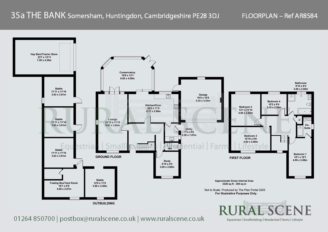 The Stableyard has an L-Shaped Stable Block comprising Five Stables and a Tack Room with post and rail enclosed concrete yard to the front, and an adjoining Hay Barn/Tractor Store with double doors and lighting. There is a mains water and electricity supply.